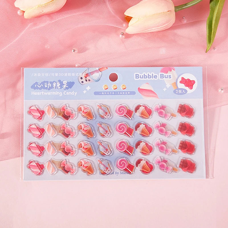 2pcs 3d relief stickers diy scrapbooking creative candy bread animal diary stationery decoration beautiful aesthetic stickers