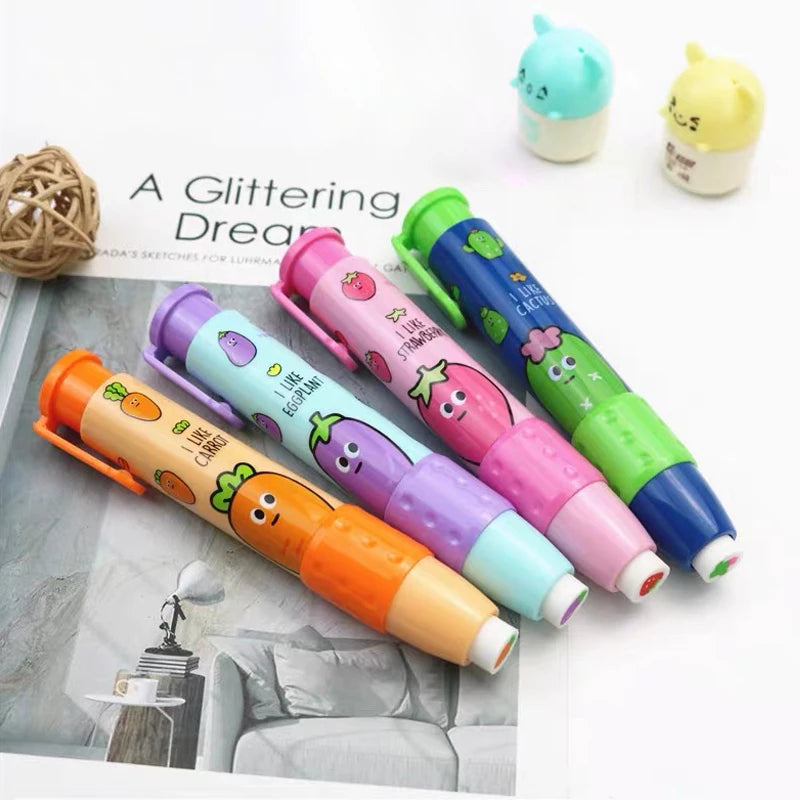 5. Suitable for all people: regardless of age, you can use this fruits and vegetables push-pull eraser. It is one of the necessary equipment for students' homework, and can also be used as an auxiliary tool for office stationery, manual DIY and painting design.
