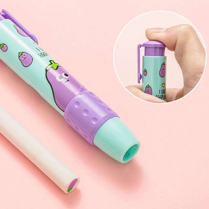 1. Innovative design: This fruits and vegetables push-pull Eraser has a unique and interesting design, adding a touch of fun to the usual boring study or work. The image of the fruits and vegetables is very interesting, not only to attract children, but also loved by adults.