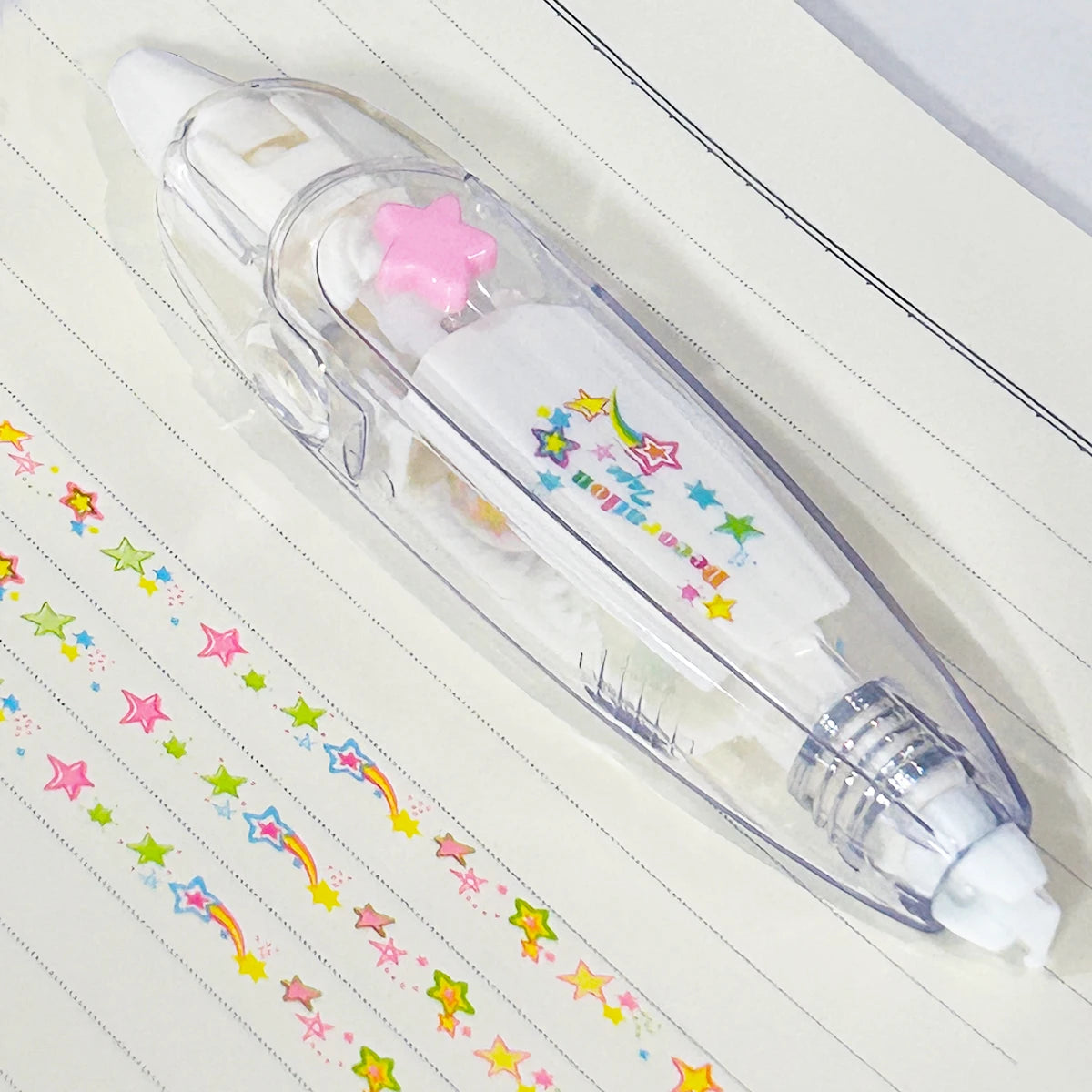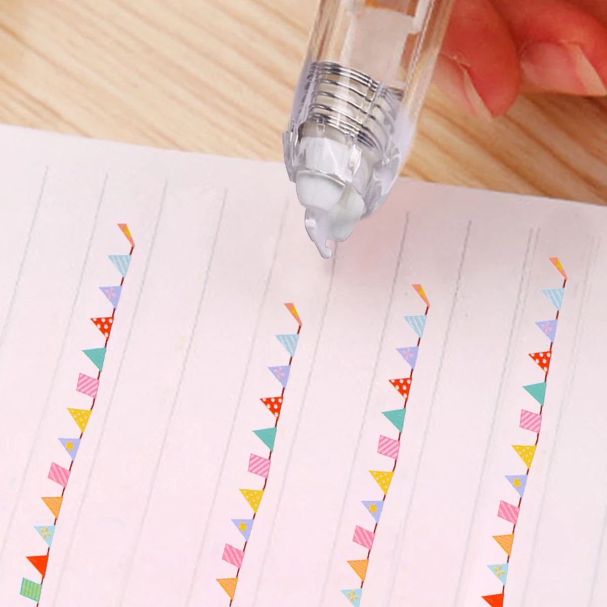1 Press the correction head to the position of the correction source, and form a correction band at a 45° Angle with the paper. Press the correction tape firmly and at the same time, pull the correction tape evenly to the right and horizontally along a straight line. The correction adhesive can cover the source that needs to be corrected under friction.