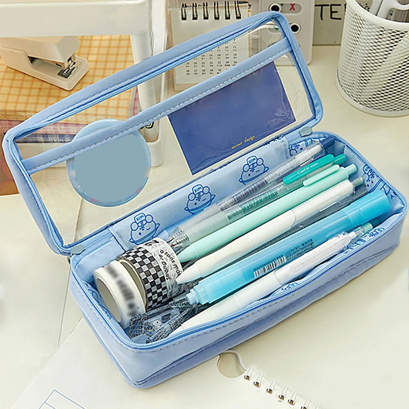1Pc Kawaii Transparent Pencil Case Large Capacity Waterproof Pen Box for Girls Cosmetic Bag Stationery Office School Supplies