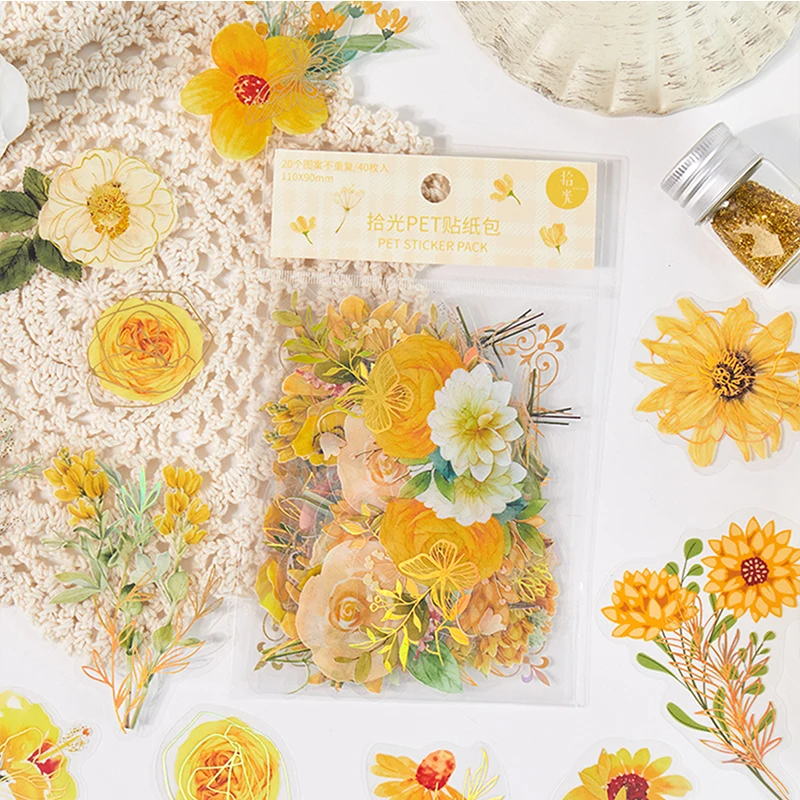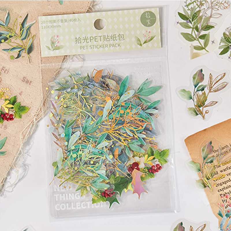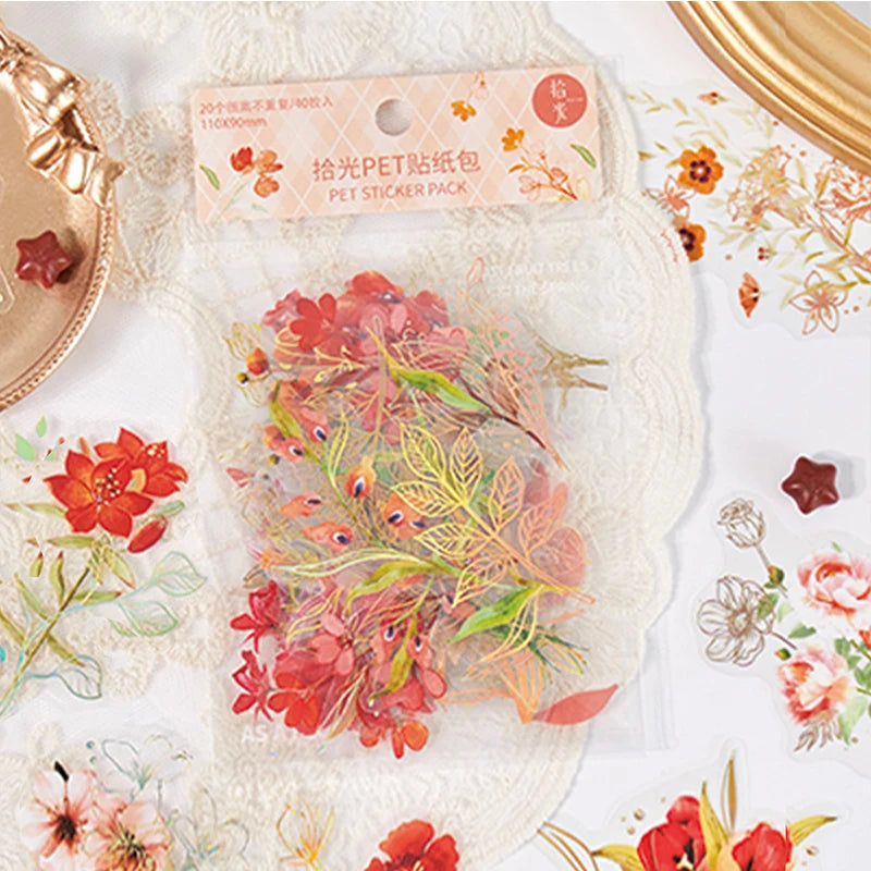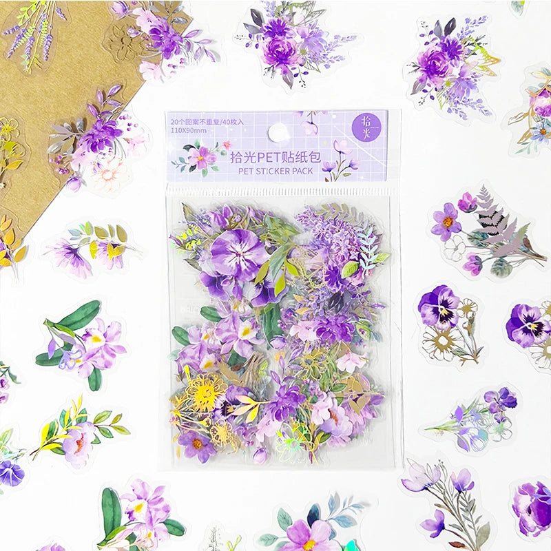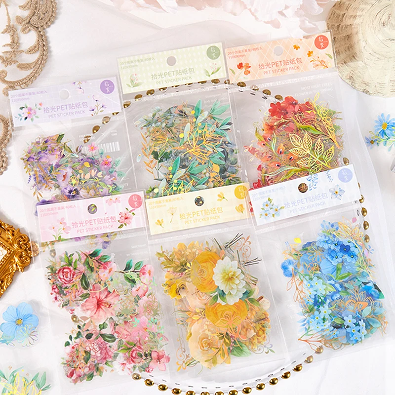 40Pcs/Bag Aesthetic Flower Stickers Pack Fresh Plant Hand Account DIY Material Decorative Stationery Stickers