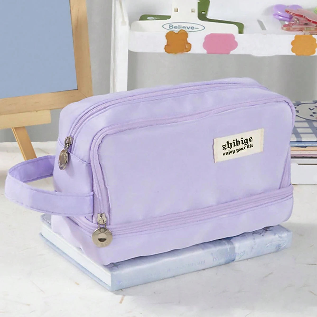 1. The stylish pencil case with macaron color scheme and large storage space make it easy for you to find and organize writing tools. Made of soft canvas material!